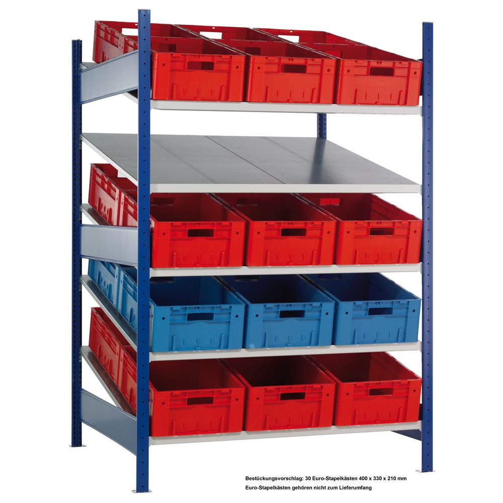 - Fachbodenregal mit Stahlblechauflagen für beidseitige Nutzung