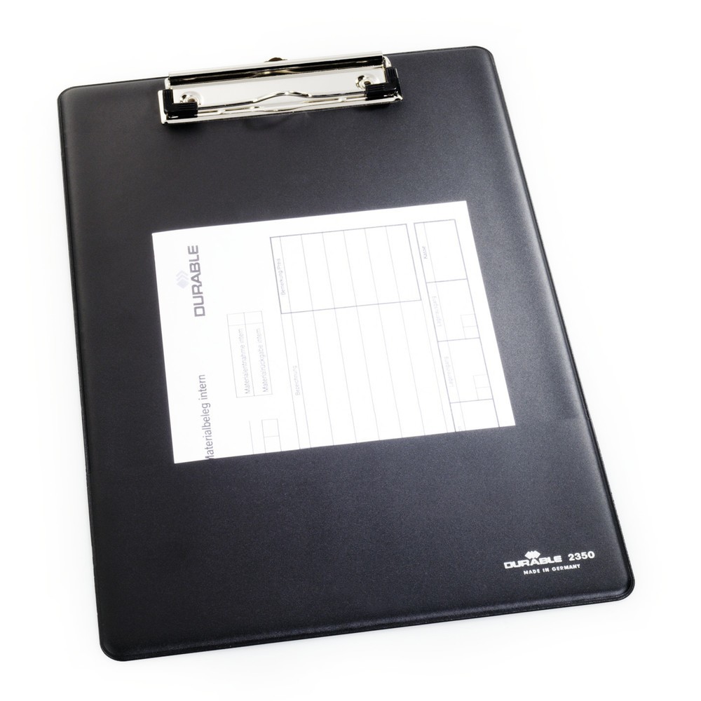 - Für Format DIN A4. Mit starker, rutschhemmender Federklemme, Tasche für Blockrücken und herausziehbarer Aufhängeöse.