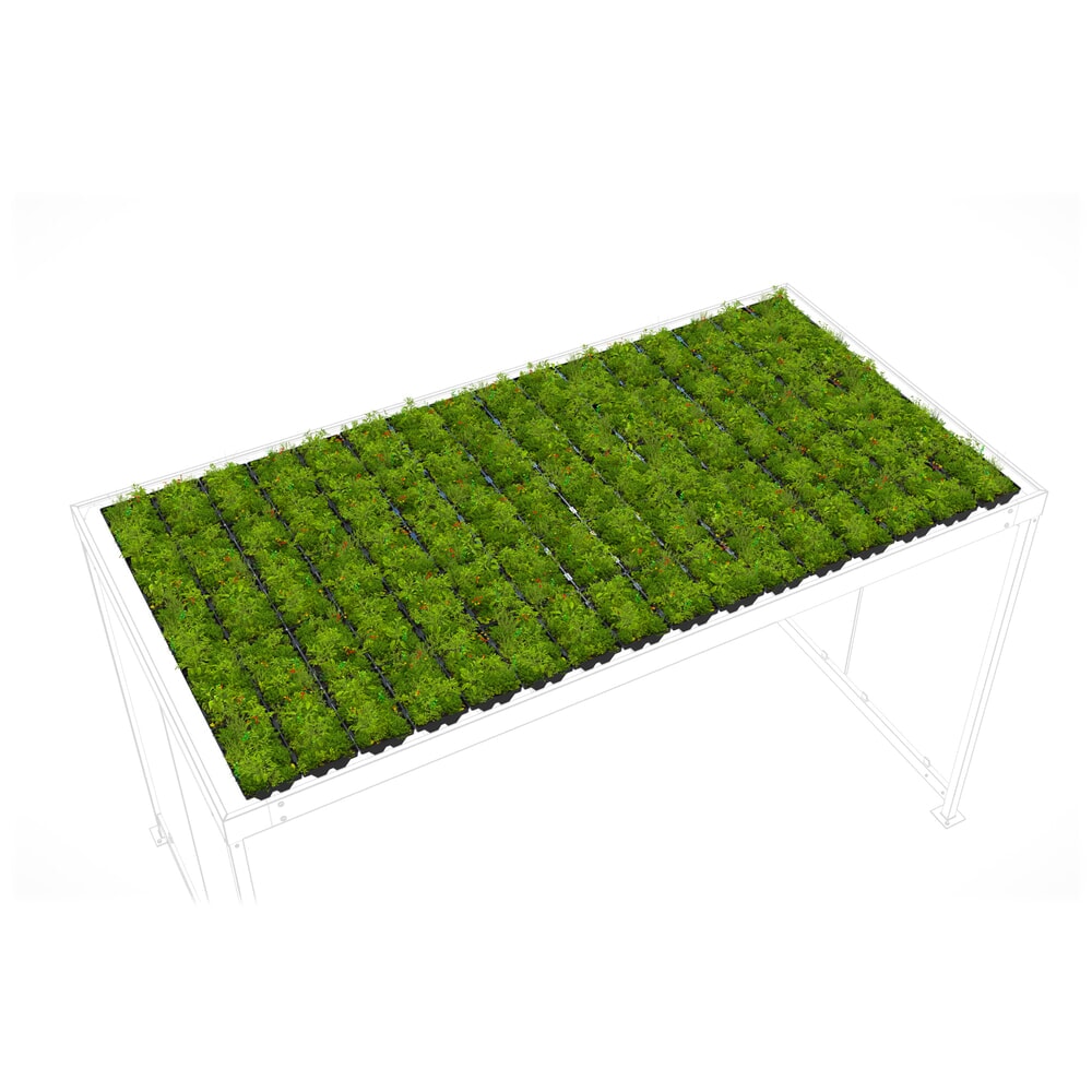 Fürs Trapezdach das passgenaue, recycelbare Pflanzmodul mit lärmreduzierenden und luftreinigenden Eigenschaften