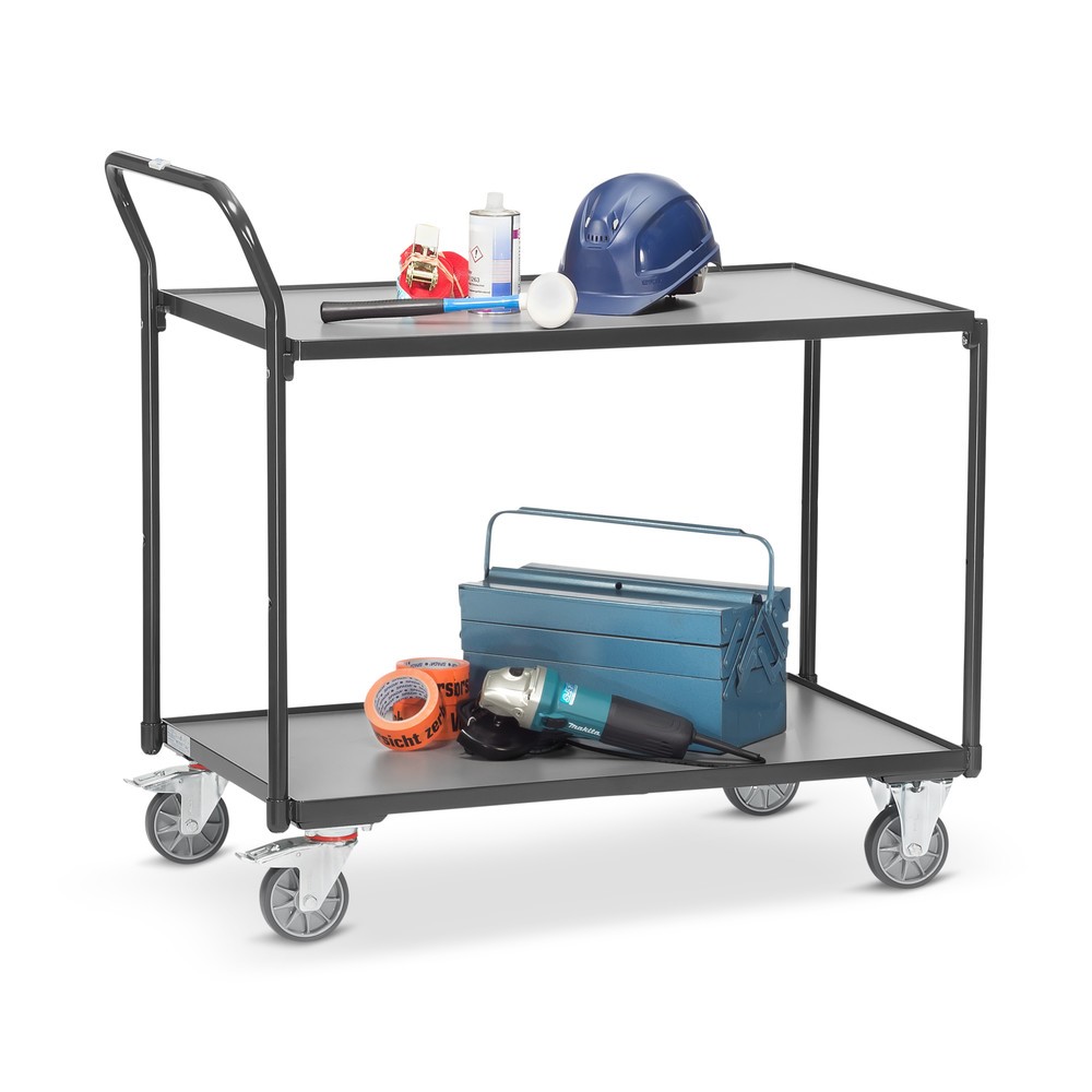 fetra® Tischwagen, TK 300 kg, 2 Etagen à 1.000 x 600 mm, hochstehender Schiebebügel, anthrazitgrau