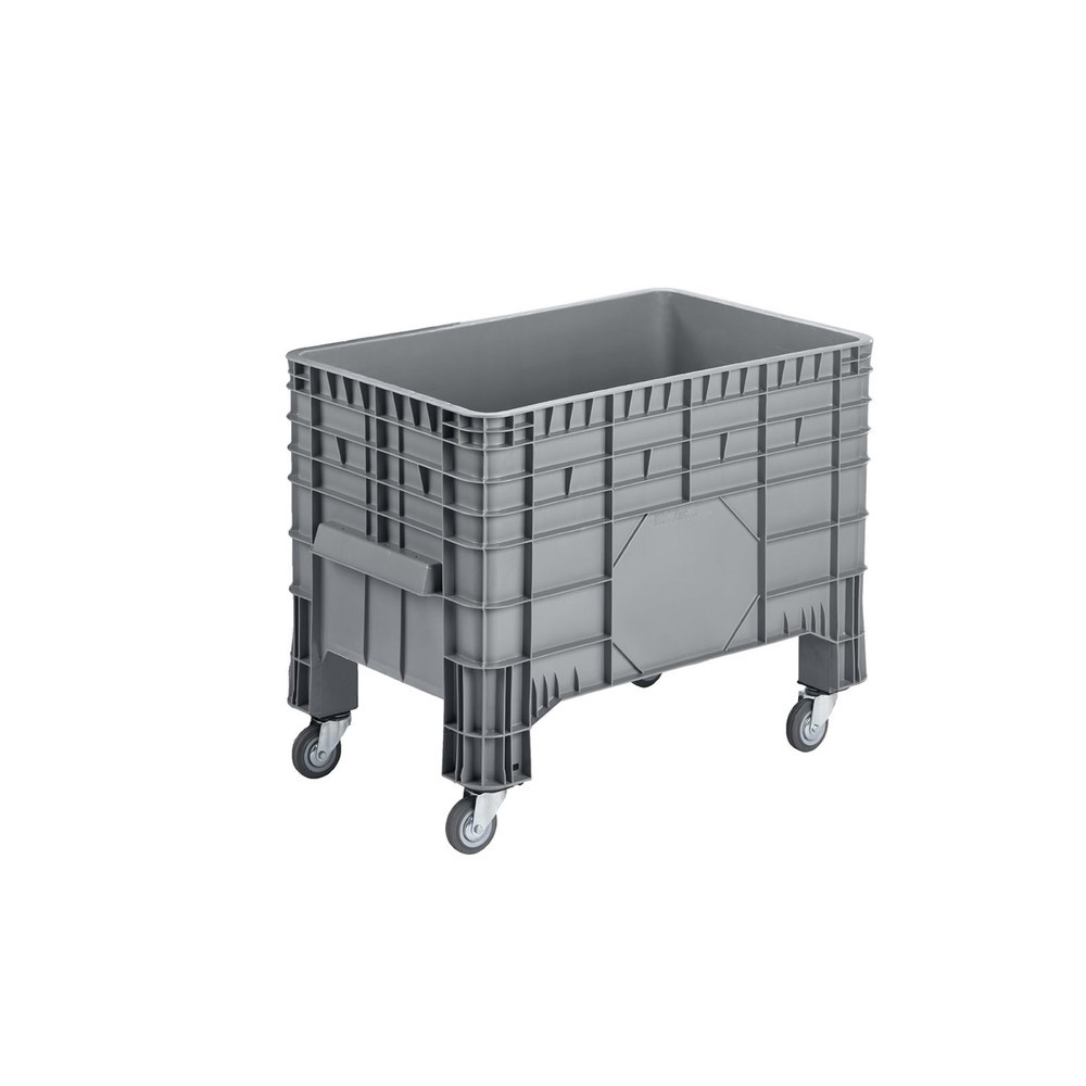 Großbehälter, grau, 1040x640x790 mm, geschlossen, mit 4 Lenkrollen