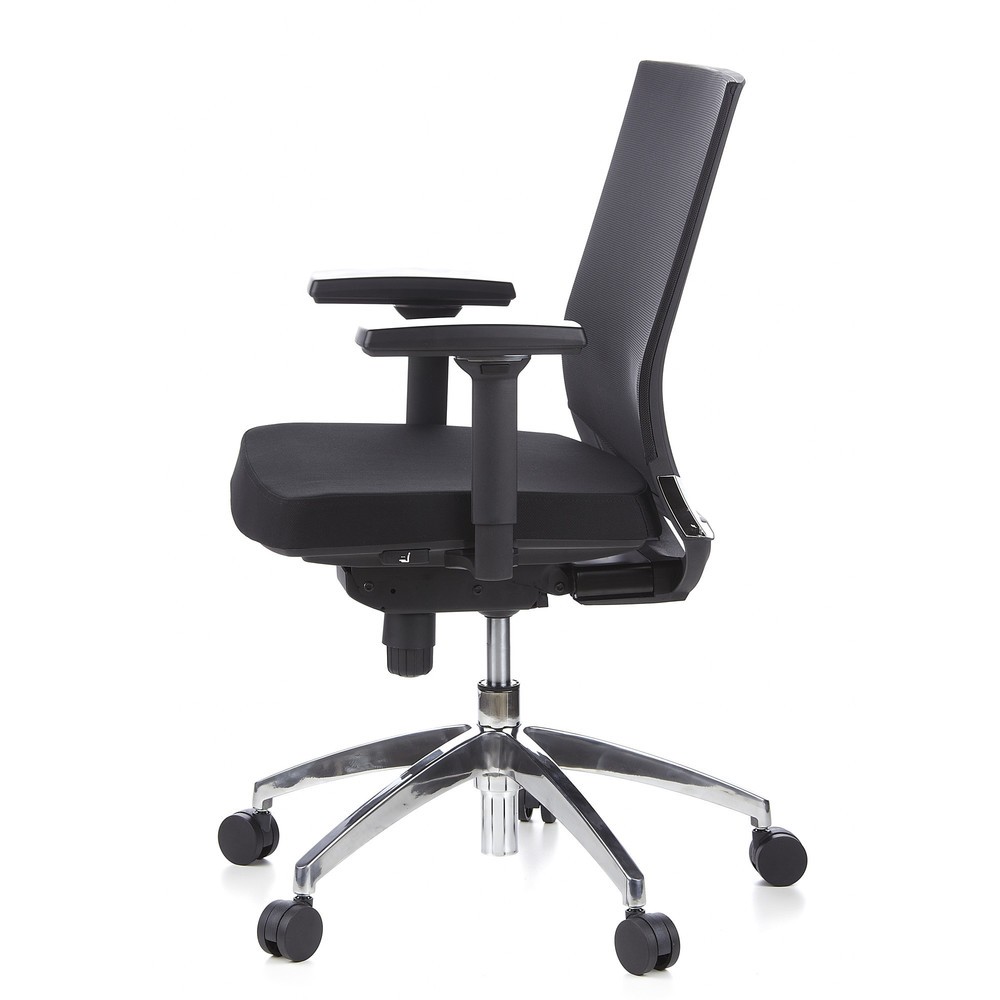 Hochwertig verarbeiteter Profi-Bürostuhl mit einstellbarer Lendenwirbelstütze für höchsten Sitzkomfort. Bezug aus atmungsaktivem Netzstoff. Inklusive höhenverstellbarer Armlehnen. Stabiles Aluminium - Designer - Fußkreuz.