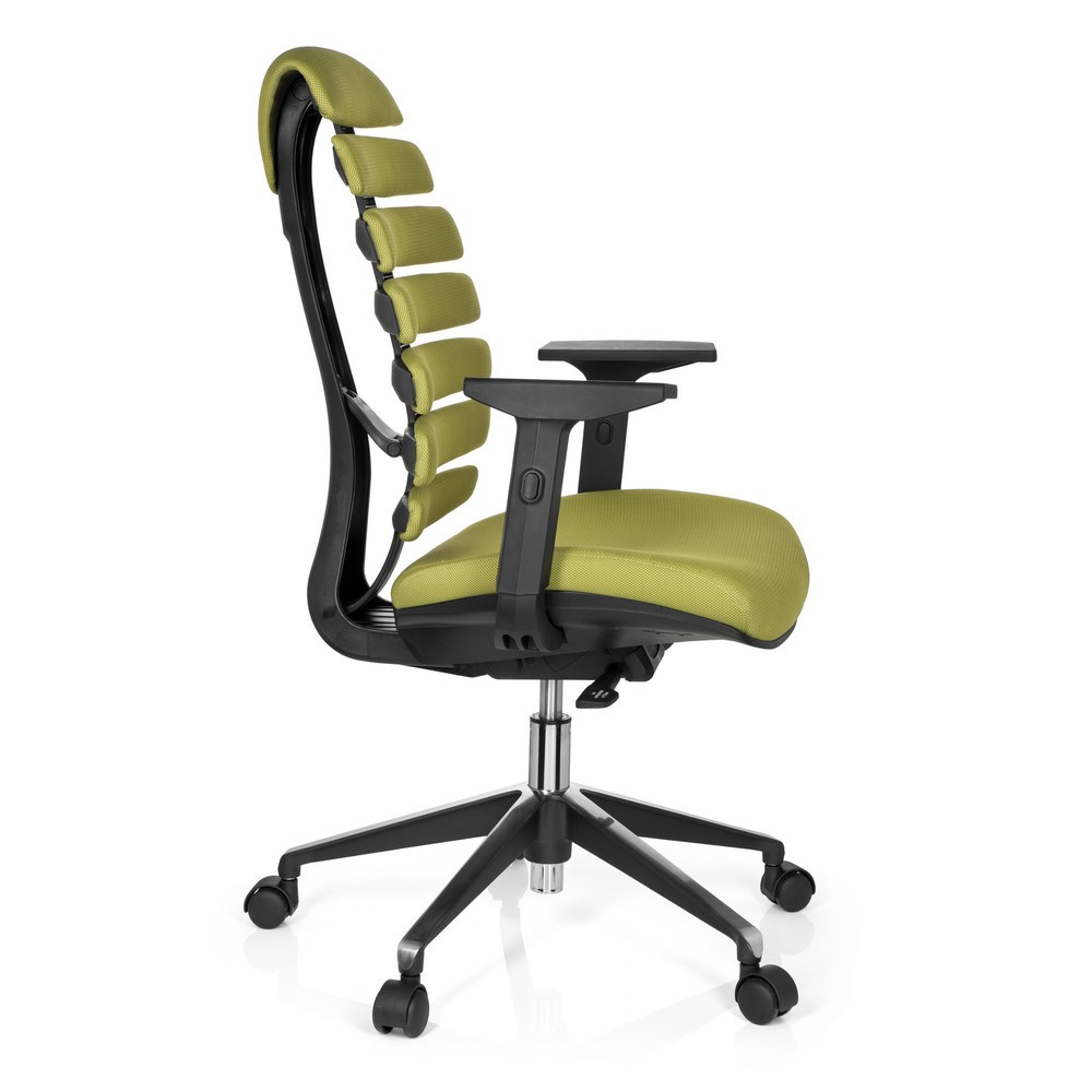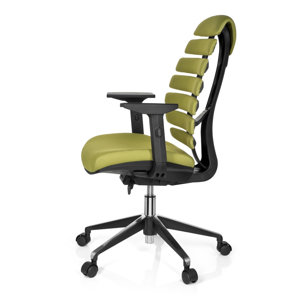 Sie finden die Auswahl an außergewöhnlichen, aber dennoch ergonomischen Bürostühlen zu klein? Dann ist der ERGO LINE II genau das Richtige für Sie. Ausgefallenes Design und eine optimale Unterstützung der richtigen Sitzhaltung findet man selten vereint in einem einzigen Stuhl. Die fließende organische Form der Rückenlehne vermittelt Dynamik und erinnert durch die einzelnen, flexiblen Rippen an die menschliche Wirbelsäule. Und genau diese Rippen sind auch das Geheimnis des Stuhls. Sie passen sich individuell an und die integrierte Lordosenstütze stabilisiert den Rücken genau an den richtigen Stellen. Schon nach wenigen Minuten sitzen fühlt man sich pudelwohl und möchte eigentlich nicht mehr so schnell aufstehen. Mit diesem Bürostuhl bringen Sie frischen Wind in Ihr Büro und tun Ihrem Rücken dabei noch etwas Gutes! Die stufenlose Sitzhöhenverstellung gehört natürlich ebenso dazu wie eine Synchronmechanik die sich automatisch an das Gewicht des Nutzers anpasst. Die Armlehnen lassen sich in fünf Stufen ganz nach Ihren Wünschen anpassen, das stabile Fußkreuz ist aus poliertem Aluminium gefertigt und somit bestens für den täglichen Einsatz im Büro geeignet.