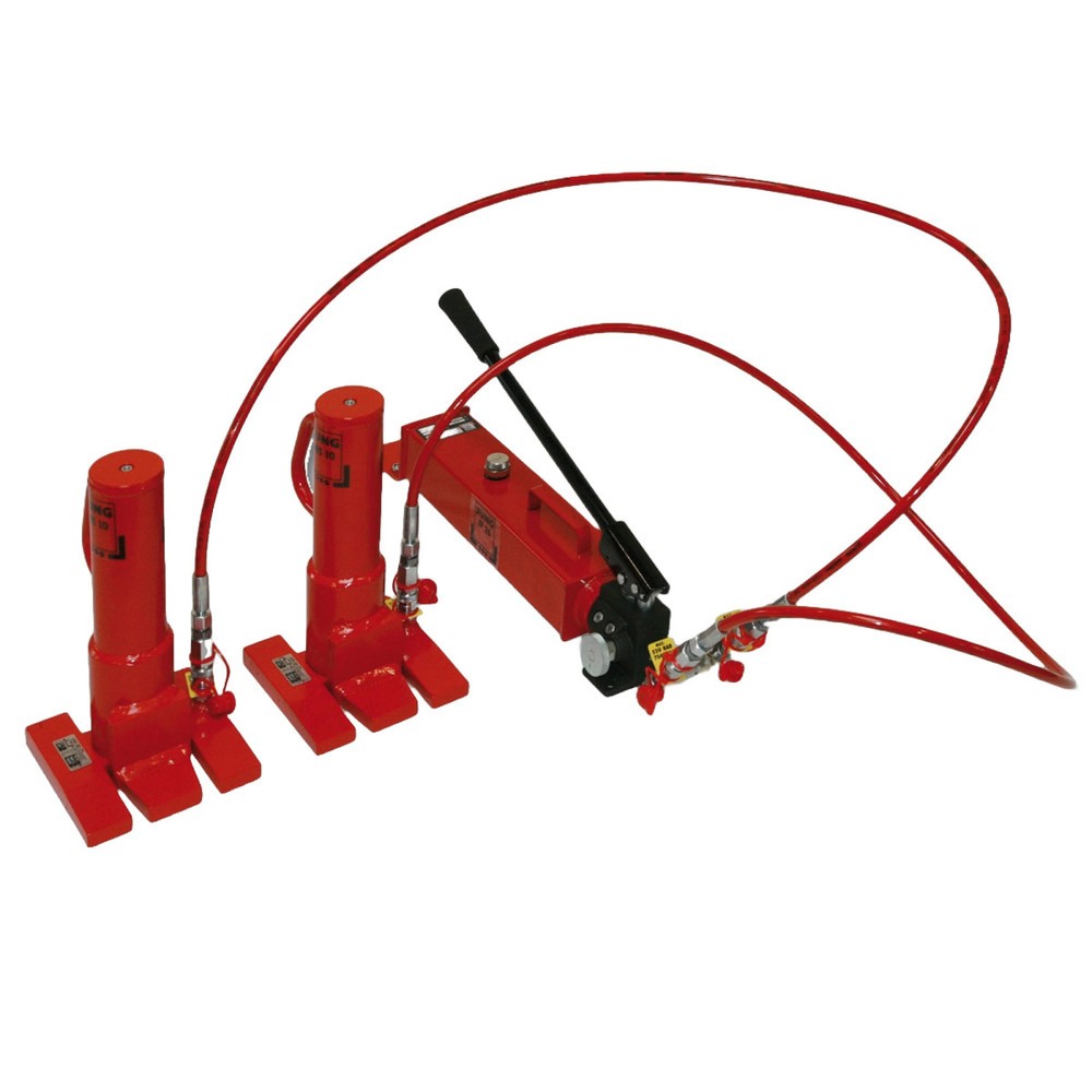 JUNG Hydraulik-Hebeset JSET 20/3, 2 x Hebegerät TK 2 x 10.000 kg, 2 x Schlauch Länge 3.000 mm, 1 x Handpumpe