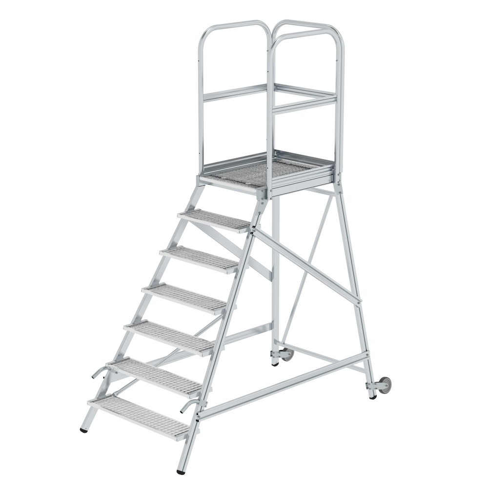 Munk Podesttreppe eins. begehbar mit Rollen und Griffen Stahl-Gitterrost 7 Stufen