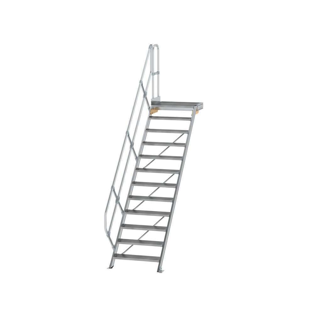 Munk Treppe mit Plattform 45° Stufenbreite 800 mm 12 Stufen Aluminium geriffelt