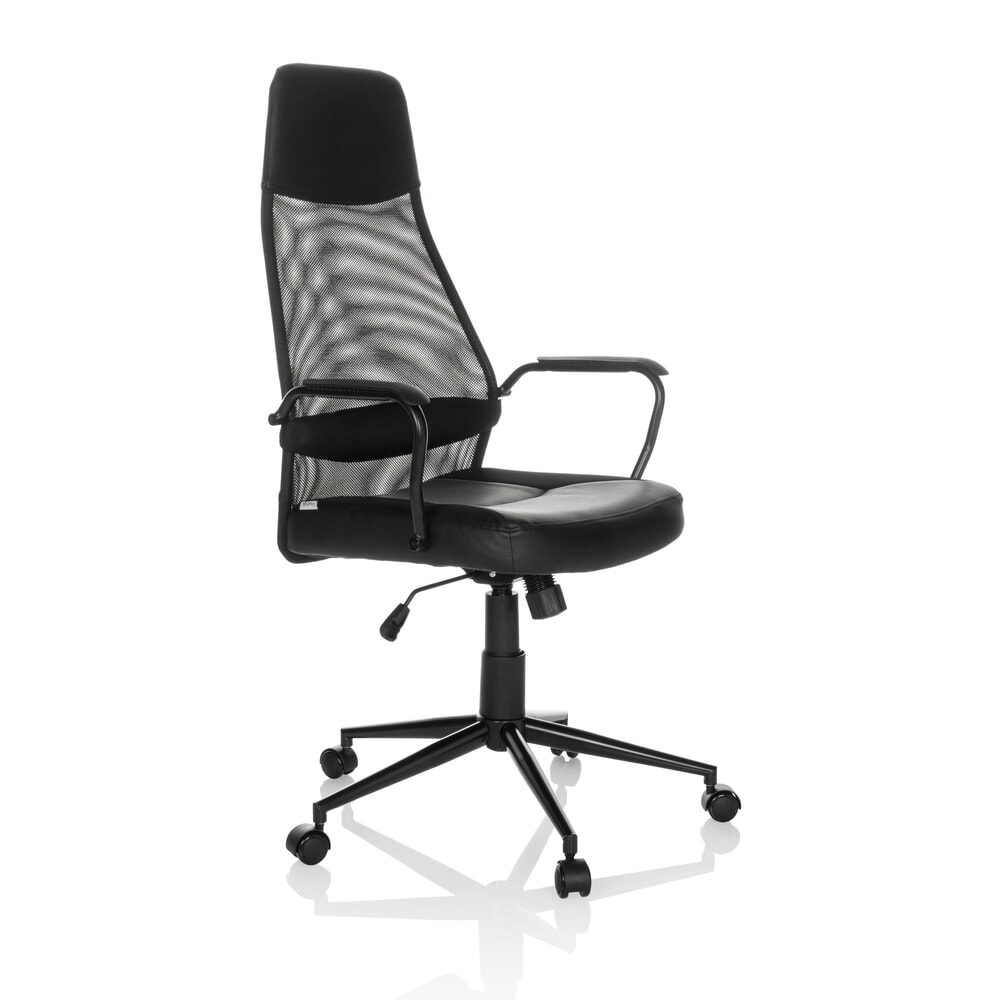 Der MARCOZ überzeugt durch eine ergonomisch geformte Rückenlehne, die eine natürliche Sitzhaltung unterstützt und den Rücken entlastet. Die Kombination aus atmungsaktivem Netzstoff und pflegeleichtem Kunstleder sorgt für ein angenehmes Sitzklima und verleiht dem Stuhl eine edle Optik.