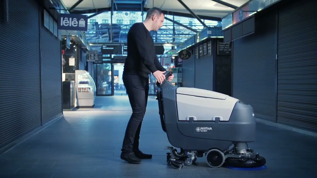 - Die kompakte und äußerst wendige Nachläufer-Scheuersaugmaschine Nilfisk SC401 bietet die Genauigkeit und Benutzerfreundlichkeit, die Sie für eine bessere Bodenreinigung benötigen. Um das Ganze abzurunden, ermöglicht der extrem niedrige Geräuschpegel dieser Hochleistungsmaschine eine Tagesreinigung auch in geräuschempfindlichen Bereichen.Entworfen und gebaut mit bewährter Nilfisk Technologie wird die SC401 die tägliche Reinigungsproduktivität in z. B. Büros, Geschäften, Hotels, Schulen, Krankenhäusern, Werkstätten usw. erhöhen. Die hohe und gleichbleibende Leistung wird durch die 43 cm grossen Bürsten oder Pads gewährleistet. Dank der patentierten, gebogenen Saugleiste wird der Boden vollständig getrocknet und das Reinigungsergebnis bleibt so länger erhalten. Bis zu 4 Stunden ununterbrochenes Scheuern und Saugen mit einer voll geladenen Batterie und bis zu 100 Minuten, bevor der Wassertank nachgefüllt werden muss.
