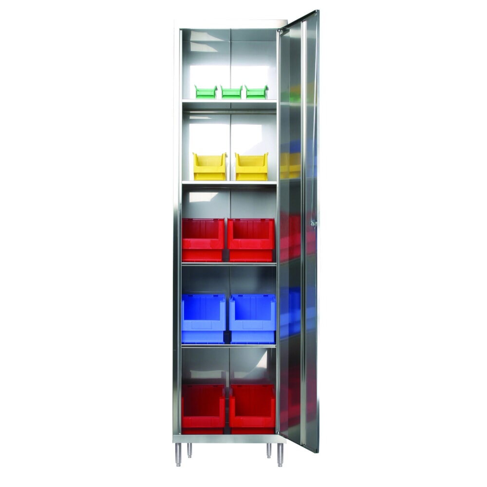 Reinsch Flügeltürenschrank aus Edelstahl, 1-flügelig, 4 Einlegeböden, HxBxT 2.000 x 500 x 500 mm, höhenverstellbare Füße
