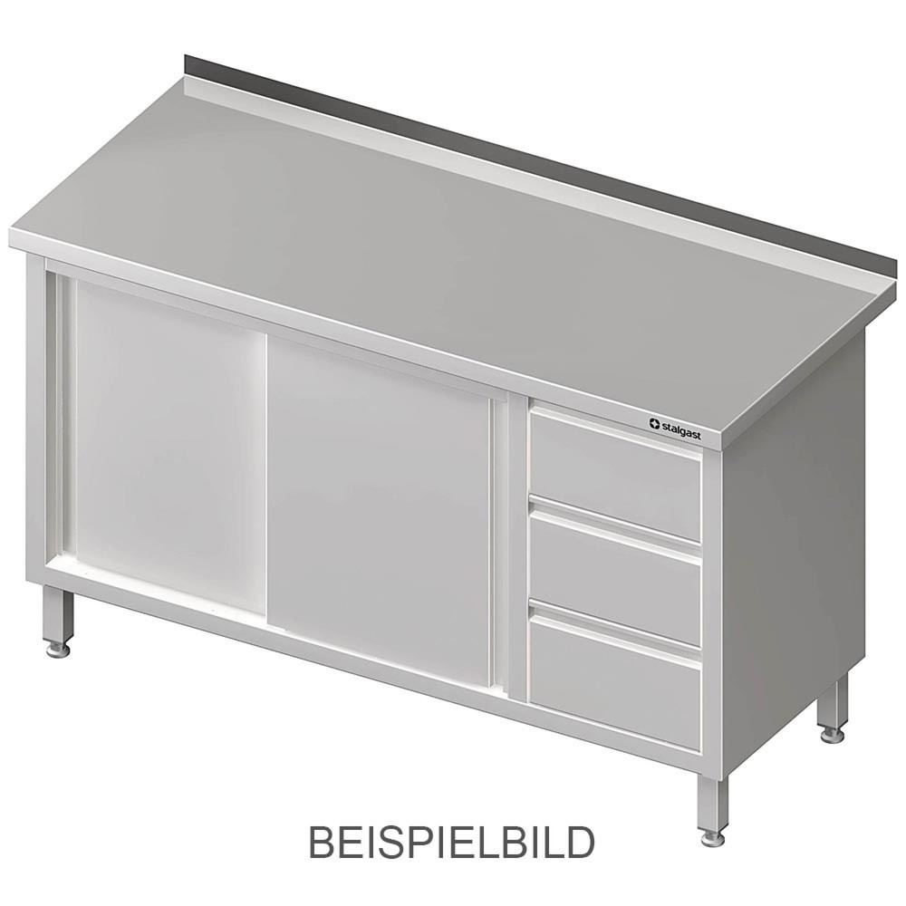 Stalgast Arbeitsschrank mit Schiebetüren, 1700x600x850 mm, mit 3er Schubladenblock rechts, ohne Aufkantung, verschweißt