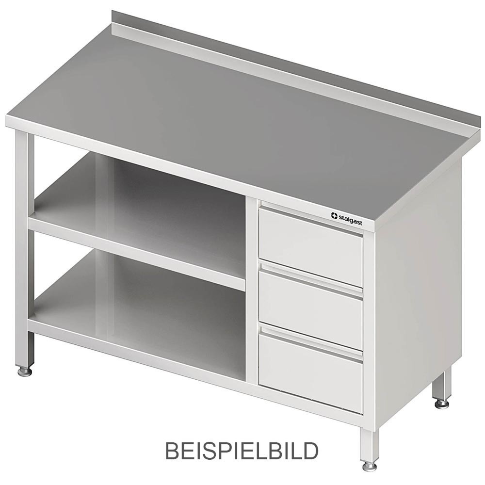 Stalgast Arbeitstisch mit Grund- und Zwischenboden, 2700x700x850 mm, mit 3er Schubladenblock links, ohne Aufkantung, verschweißt