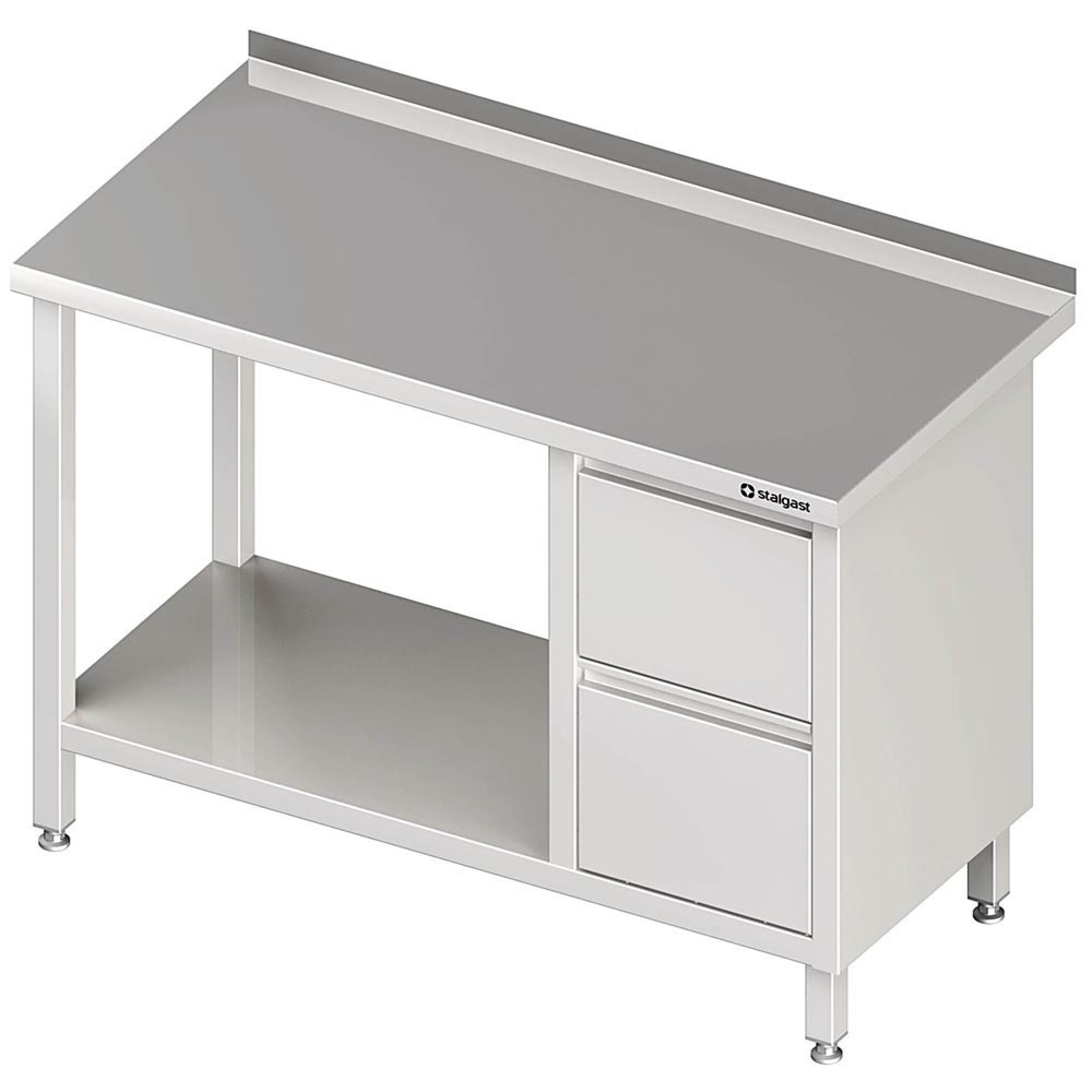 Stalgast Arbeitstisch mit Grundboden, 2100x700x850 mm, mit 2er Schubladenblock rechts, mit Aufkantung, verschweißt