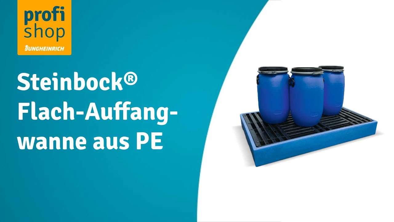 Die Auffangwanne aus Polyethylen ist beständig gegen viele Säuren, Laugen, Öle und ähnliche Stoffe, zudem ist das Material korrosionsfest. Sie können mehrere Wannen problemlos zu größeren Lagerflächen kombinieren. Die Flachbodenwanne aus Polyethylen verfügt über eine Höhe von 150 mm: Über eine passende Auffahrrampe fahren Sie die Fässer einfach auf die Plattform aus Auffangwannen.