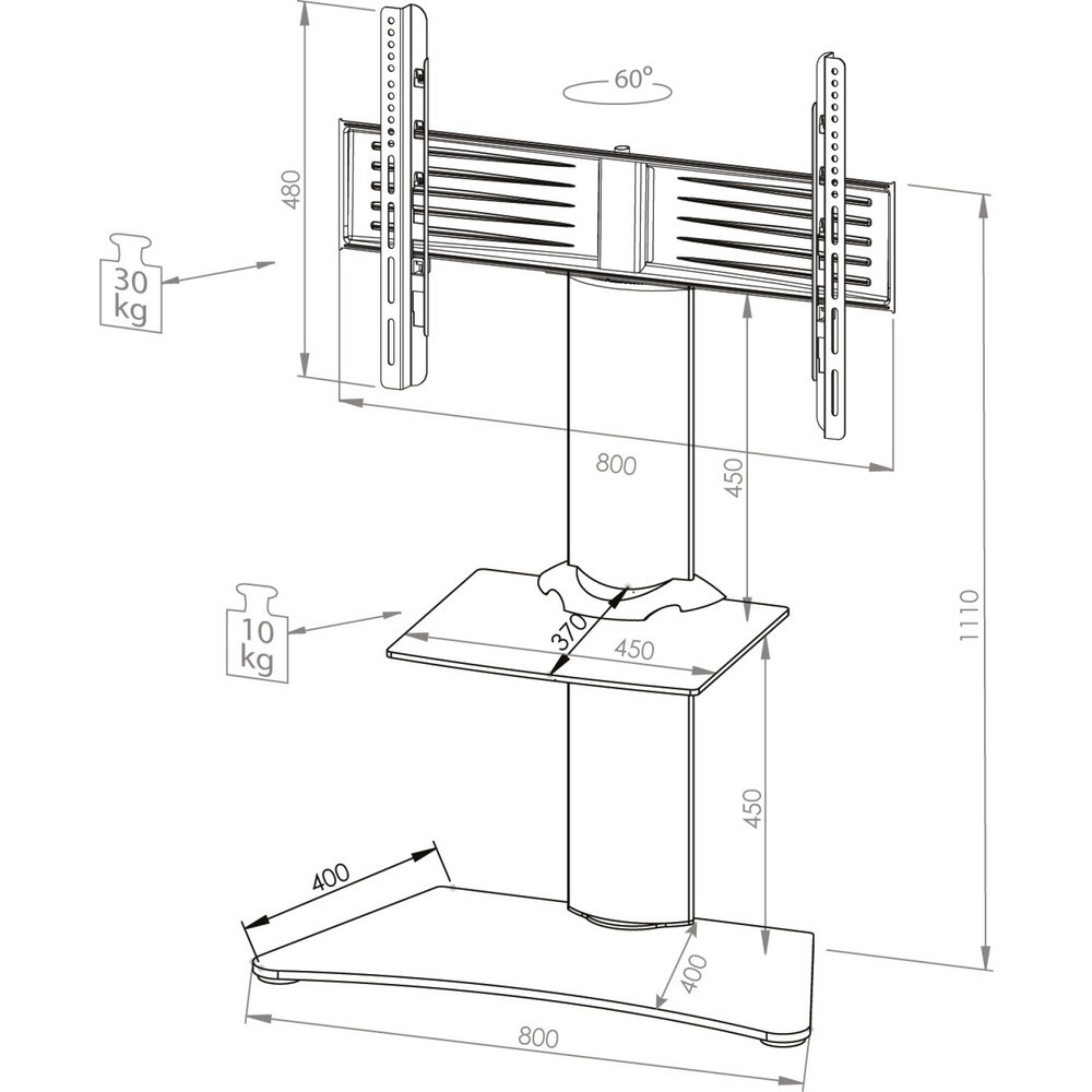 Der VCM TV-Standfuß Zental aus gebürstetem Aluminium bietet eine schwenkbare Halterung um 60°. Er unterstützt LED-, LCD- und PLASMA-TV-Geräte von 32 Zoll bis 70 Zoll und bis maximal 30 kg. Die verdeckte Kabelführung sorgt für Ordnung und Ästhetik in jedem Raum.
