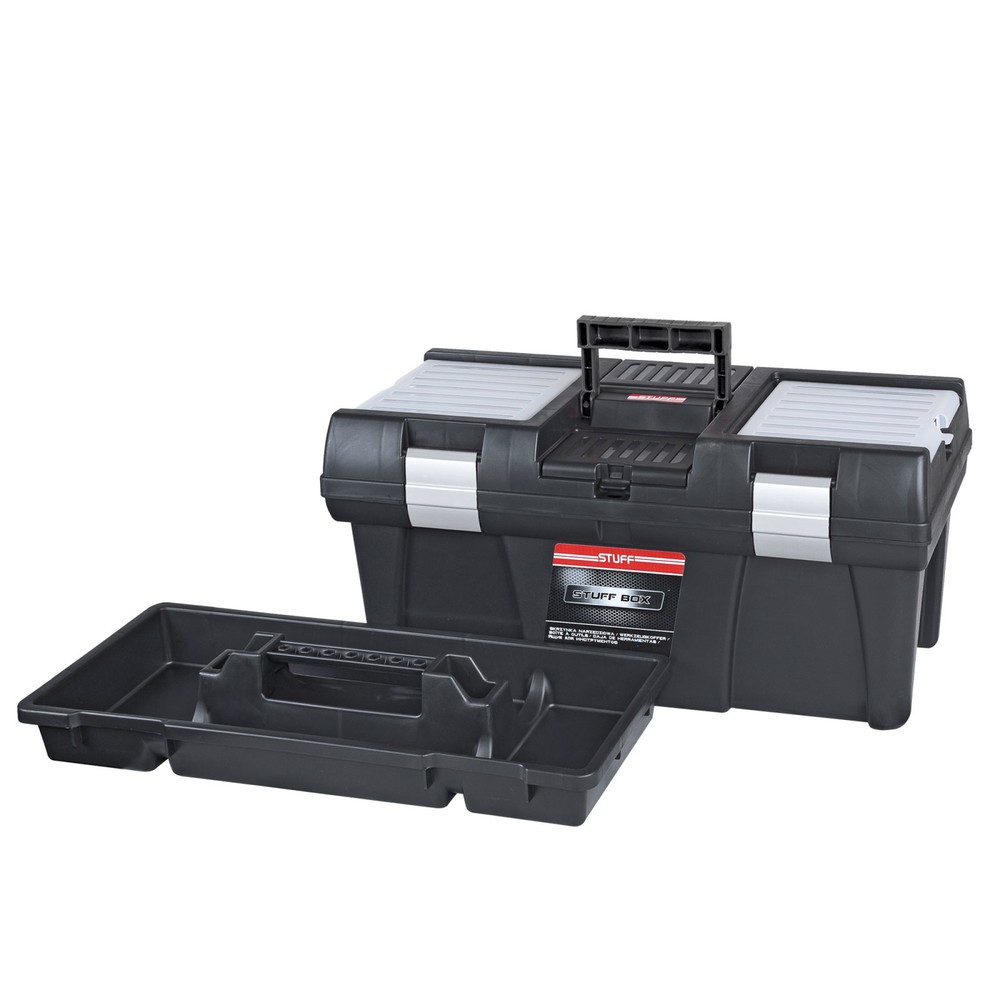 Ein preiswertes Einsteigermodell für den ordnungsbewussten Handwerker: Das bietet der Werkzeugkoffer/Werkzeugkasten STUFF aus stoßfestem Kunststoff. In den verschließbaren Deckelfächern und der herausnehmbaren Innenwanne lassen sich Kleinteile übersichtlich sortieren.