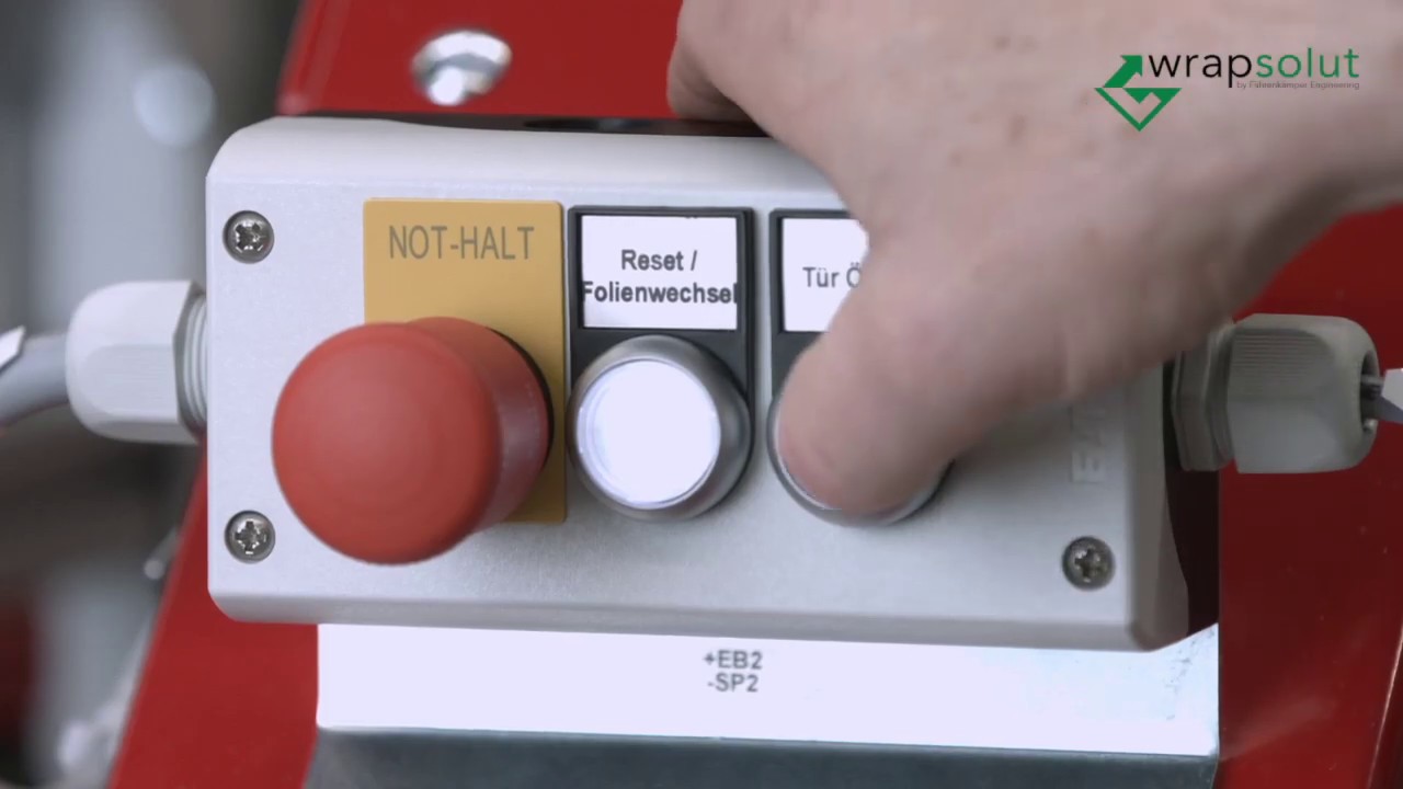 - Mit Not-Halt, Sicherheitsverriegelung der Folienrollenhalterung und Sicherheitszuhaltung der Folienwechselklappe