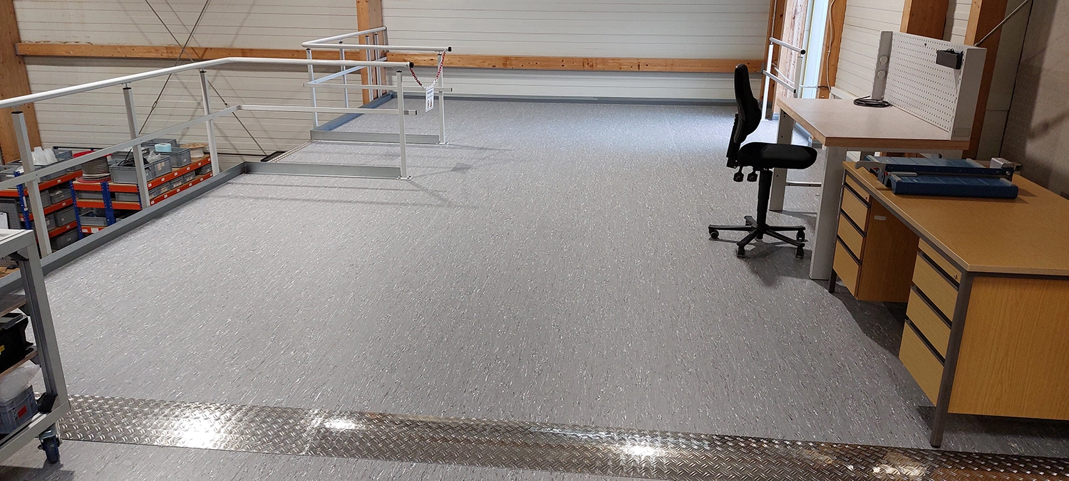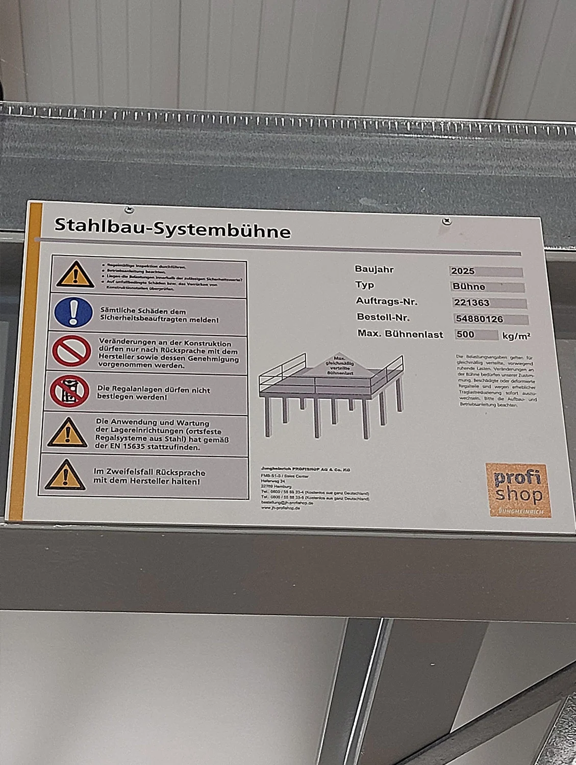 Um zusätzliche Arbeitsflächen zu schaffen, wurde eine bestehende Bühne um eine weitere Lagerbühne erweitert – inklusive sicherer Übergabestation und durchgehend verlegtem Boden.