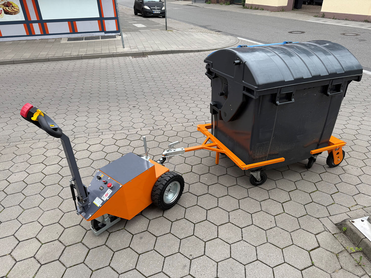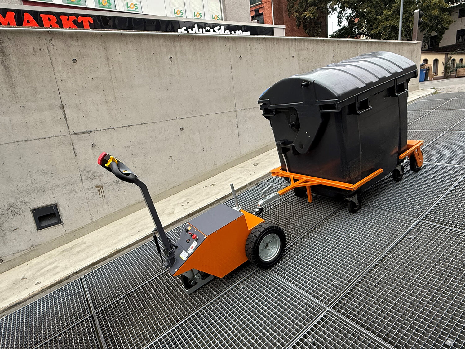 Für die Hanseatische Projekt Realisierungsgesellschaft entwickelte Jungheinrich PROFISHOP eine sichere und kraftvolle Transportlösung für schwere 1100-Liter-Mülltonnen über eine 18 Meter lange Rampe.