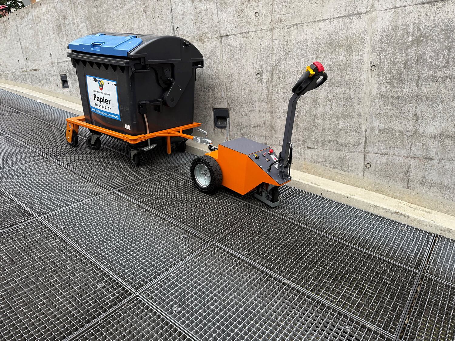Die Hanseatische Projekt Realisierungsgesellschaft mbH ist ein Hamburger Unternehmen. Das Unternehmen betreibt Immobilien und sorgt für reibungslose Abläufe im Gebäudemanagement – von der Tiefgarage bis zur Entsorgung. Für den täglichen Betrieb musste eine Lösung gefunden werden, um schwere Mülltonnen effizient und sicher über eine steile Rampe zu transportieren.