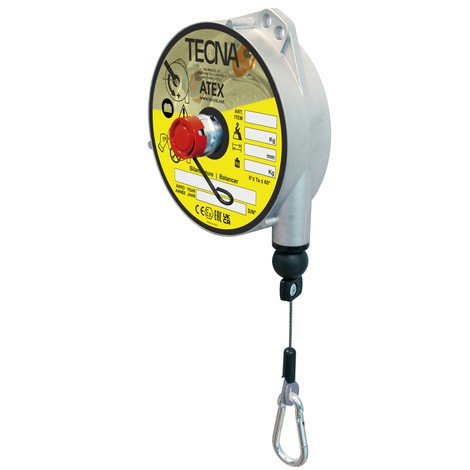 Das federbasierte Hebezeug arbeitet über eine vorgespannte Schraubenfeder und hält das Werkzeug in der voreingestellten Position. Anders als beim Balancer, der über den gesamten Hubweg eine konstante Rückzugskraft erzeugt, nimmt die Auszugskraft des Federzugs mit der Seilauszugslänge zu. Daher ist es nötig, die Tragfähigkeit für jede Last fest einzustellen.