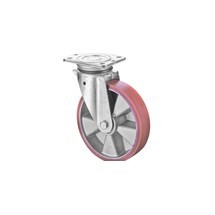 Bei Jungheinrich PROFISHOP finden Sie die Lenkrollen für Schwerlast mit verschiedenen Laufbelägen, diversen Radabmessungen und Tragkräften bis 10.000 kg. Alle Modelle werden über eine robuste Anschraubplatte montiert und gewährleisten damit eine sichere, spielfreie Kraftübertragung auf das Fahrgestell.
