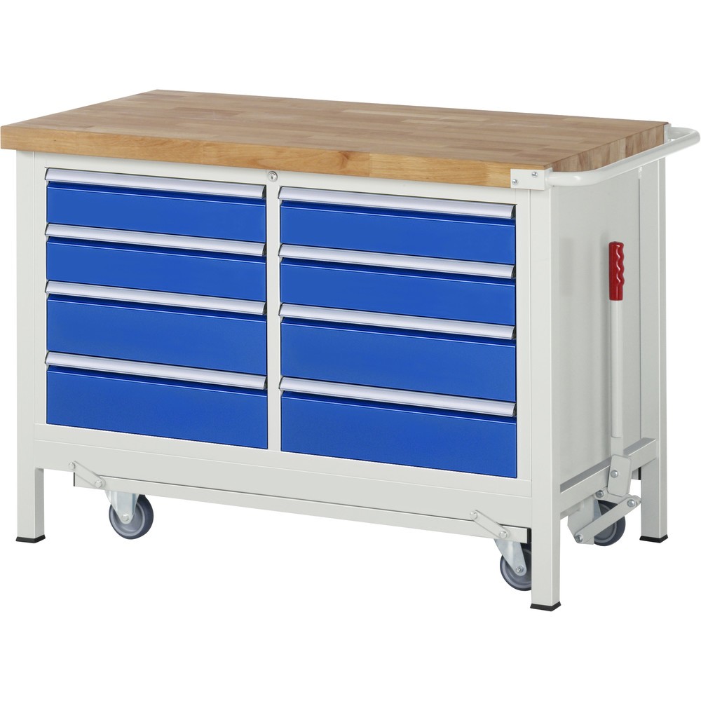 Neben den einfachen Modellen sind auch Ausführungen mit Schubladen aus Stahlblech erhältlich. Sie bieten zusätzlichen Stauraum für Werkstatt-Utensilien, Akten oder kleinere Werkzeuge. Hochwertige Kugellager sorgen dafür, dass Sie die Schubladen leichtgängig ein- und ausziehen. Optional lässt sich der Schreibtischinhalt durch zentralverschließbare Zylinder-Schlösser schützen.